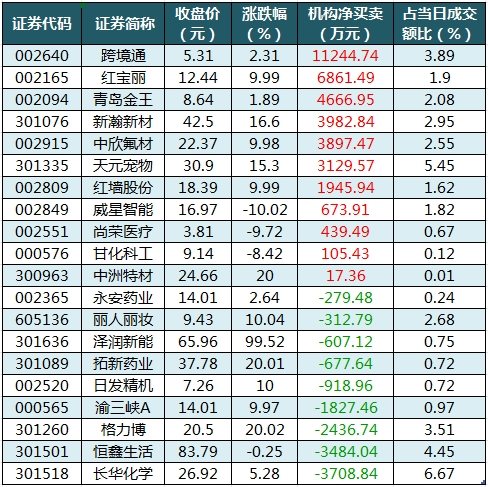 龙虎榜机构净买入11股 跨境通(002640)居首