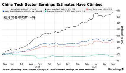 市场将重磅科技股最新的业绩视为港股短期内的晴雨表,在此之前,市场对于业绩报以很高预期。分析师对恒生科技指数的盈利预期在过去一年上涨了30%以上,超过了大盘。然而,贸易担忧仍使中国科技股指数略微黯淡,目前仍较3月份因中国人工智能进步而创下的高点下跌约14%。