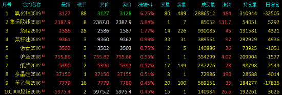 文章版权声明:除非注明,否则均为期货收评:氧化铝涨6%,集运欧线涨5%,烧碱涨1%,焦煤、碳酸锂跌2%,纯碱、工业硅、尿素、焦炭、甲醇跌1%原创文章,转载或复制请以超链接形式并注明出处。