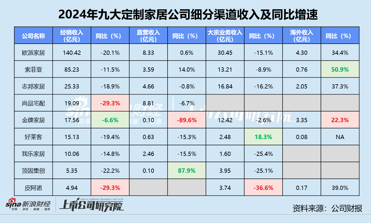 截至4月30日,欧派家居、索菲亚、志邦家居、尚品宅配、金牌家居、好莱客、我乐家居(维权)、顶固集创和皮阿诺9家A股上市的定制家居公司均已发布2024年业绩报告。
